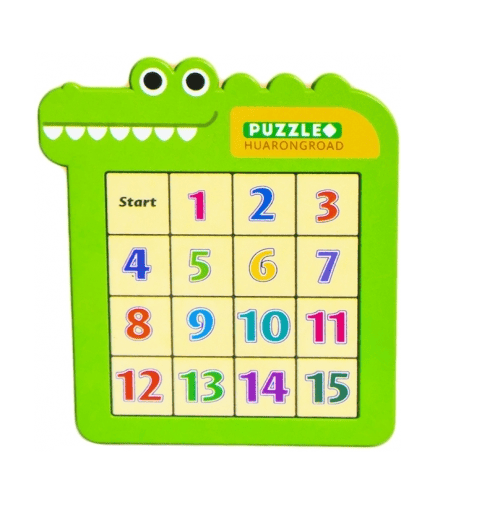 The puzzle with numbers from 1 to 15 is easy to use: mix the pieces, arrange the pieces in ascending order and place them on the plastic board|
